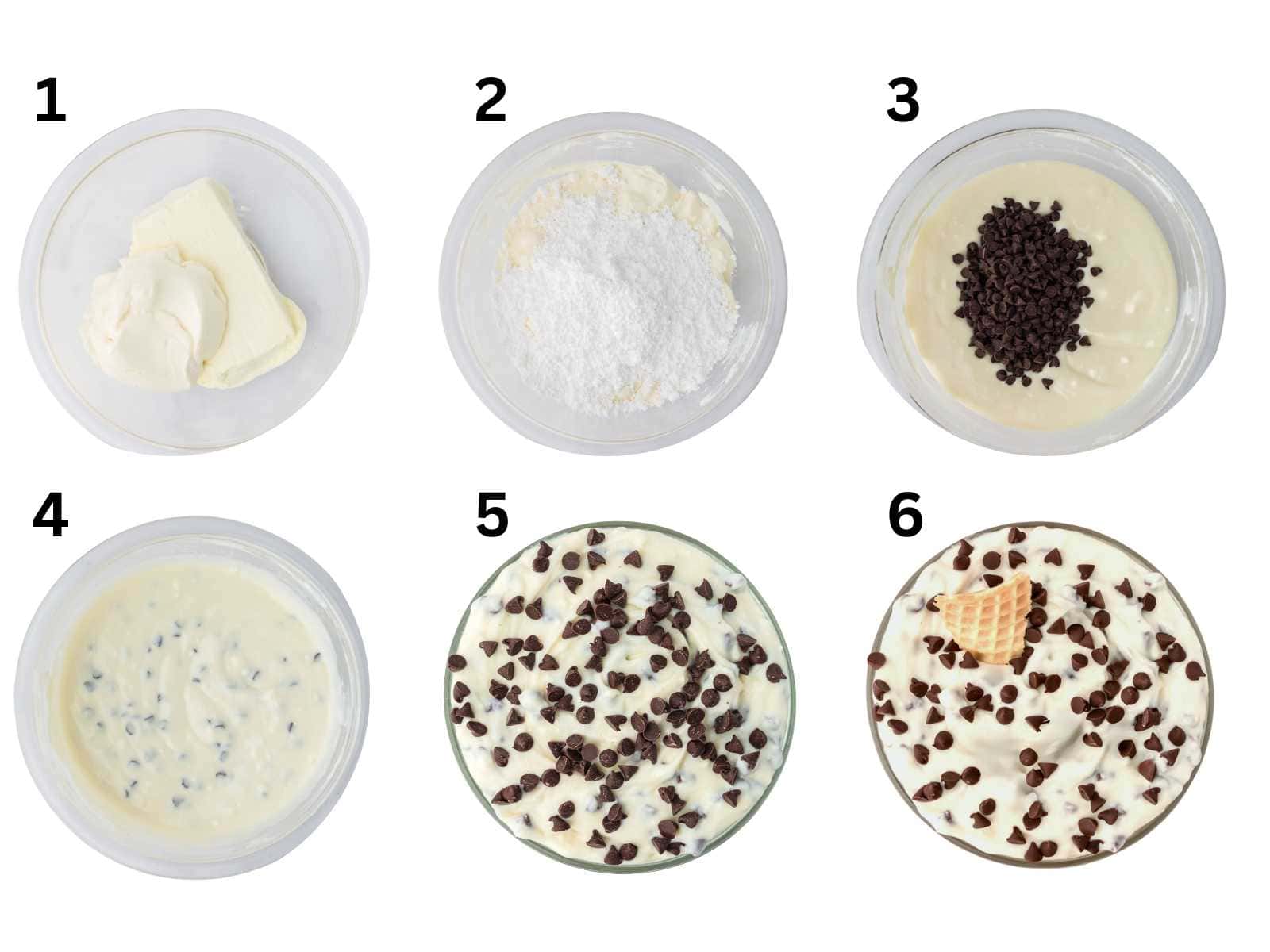 - Chill the cannoli dip covered in your refrigerator for up to 1 hour or overnight if desired. Once ready to serve, sprinkle with remaining 1/4 cup of mini chocolate chips.