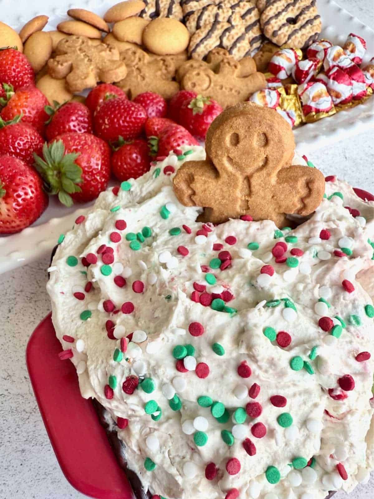 Leftovers: Store this Christmas dessert dip in an airtight container in the refrigerator for up to 3 days. Give it a quick stir before serving to refresh its fluffy texture.