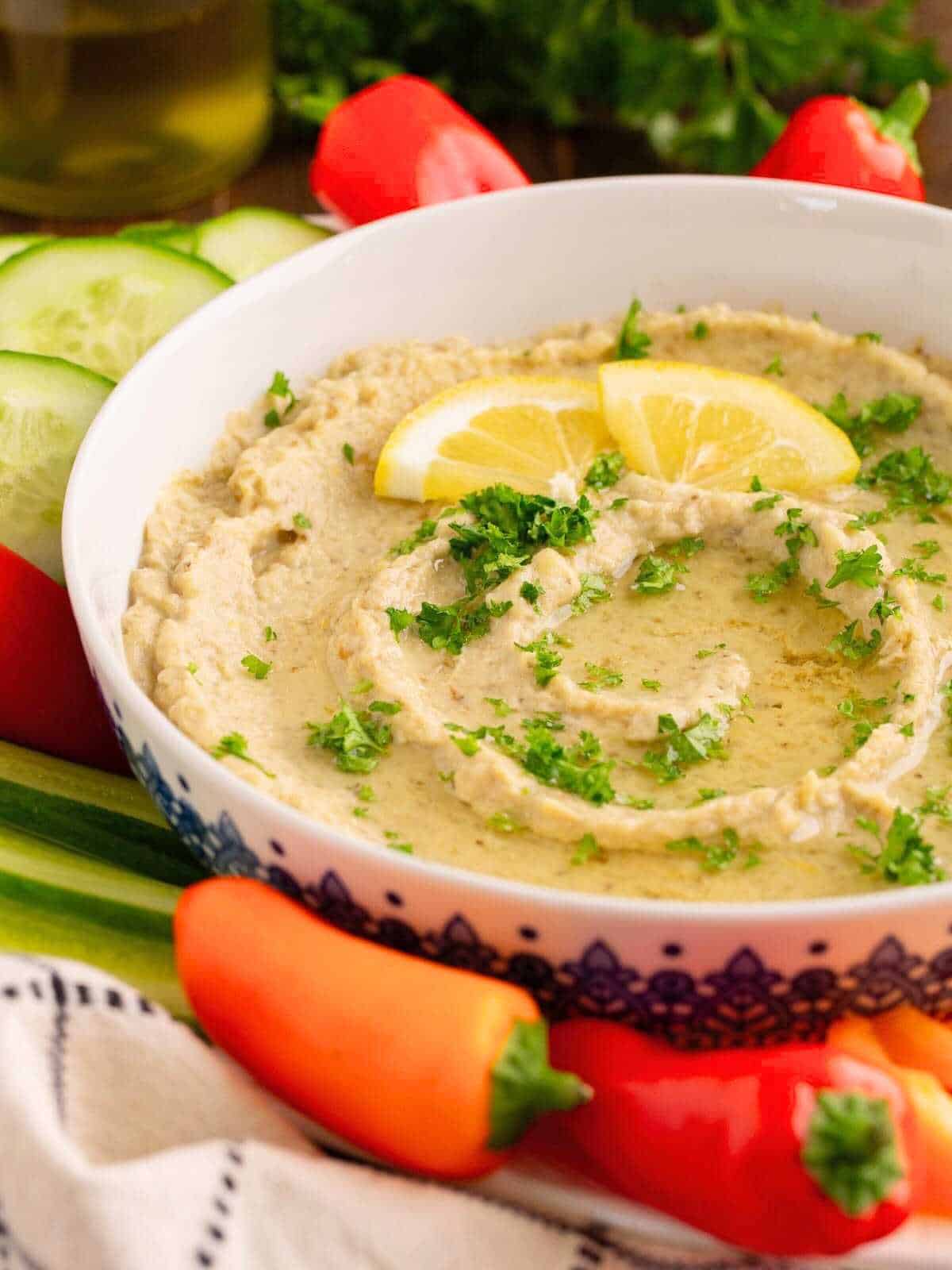 - Rich, smoky flavor: Grilled eggplant that’s charred over an open flame delivers a deep, smoky taste that makes this dip stand out.